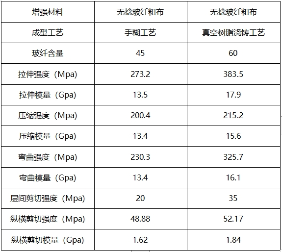 手糊工藝防雨帽和真空澆注工藝性能對比: